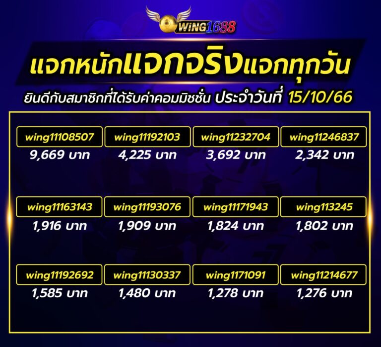 ยินดีกับสมาชิกได้รับค่าคอมมิชชั่นประจำวันที่ 15/10/66