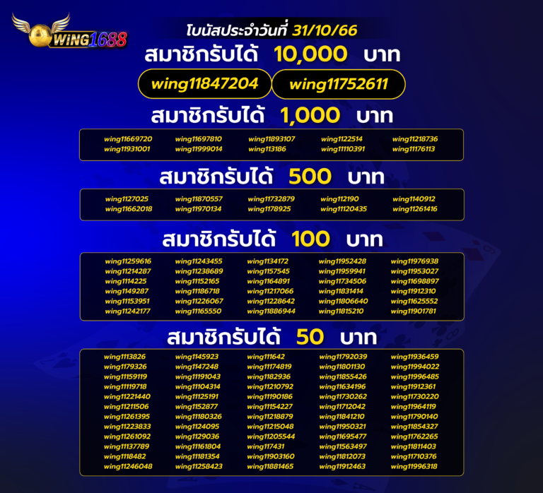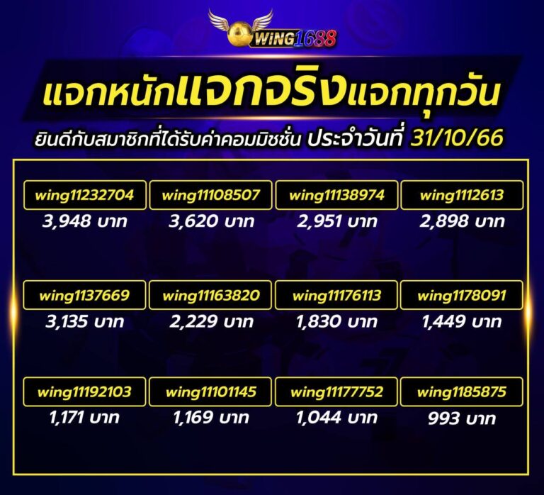 ยินดีกับสมาชิกได้รับค่าคอมมิชชั่นประจำวันที่ 31/10/66