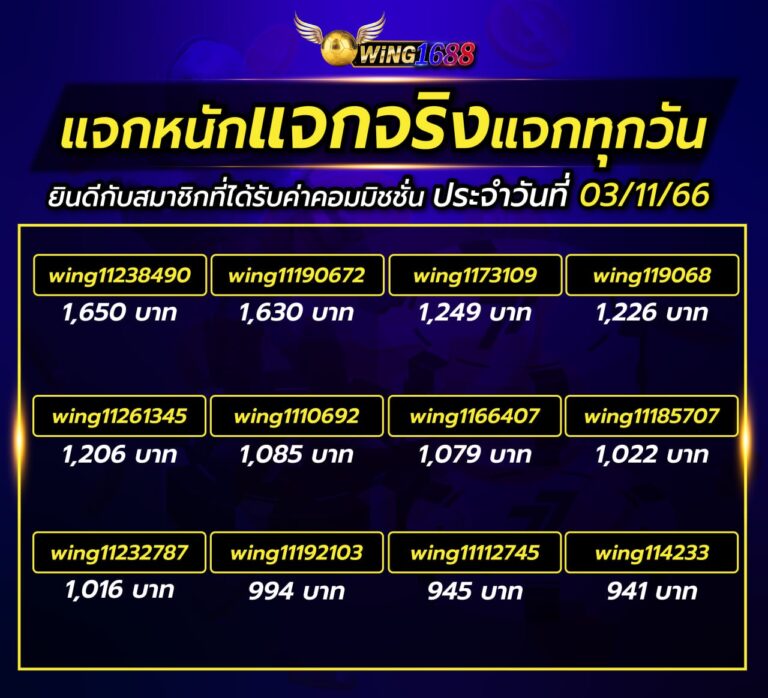 ยินดีกับสมาชิกได้รับค่าคอมมิชชั่นประจำวันที่ 03/11/66