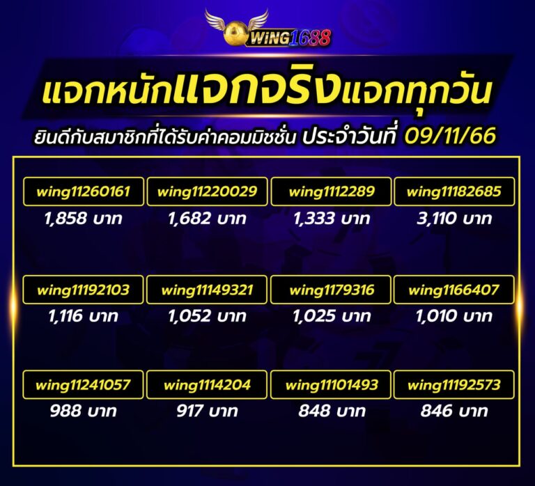 ยินดีกับสมาชิกได้รับค่าคอมมิชชั่นประจำวันที่ 09/11/66